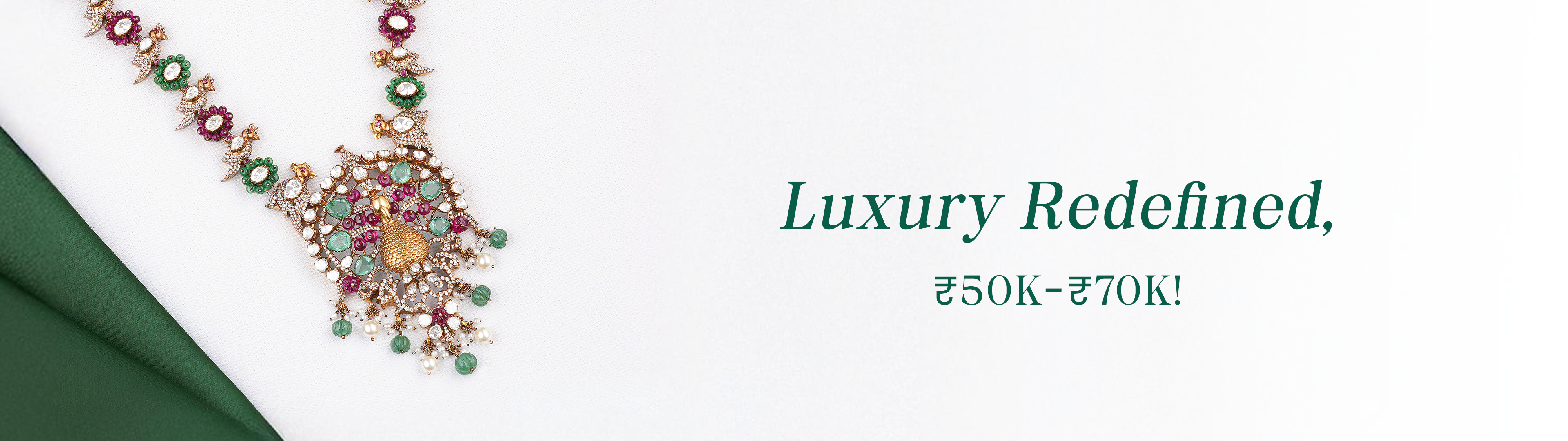₹ 53,092MUNTAZ VICTORIAN PEACOCK DESIGN LONG NECKLACE WITH MOISSANITES EMERALDS RUBIES BEADS AND PEARLS