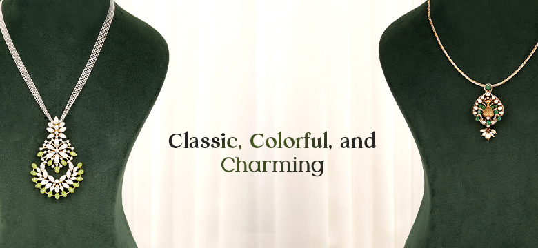 ₹ 13,442AASHI NAKSHI AND GREEN RUSSIAN BEADS MALA