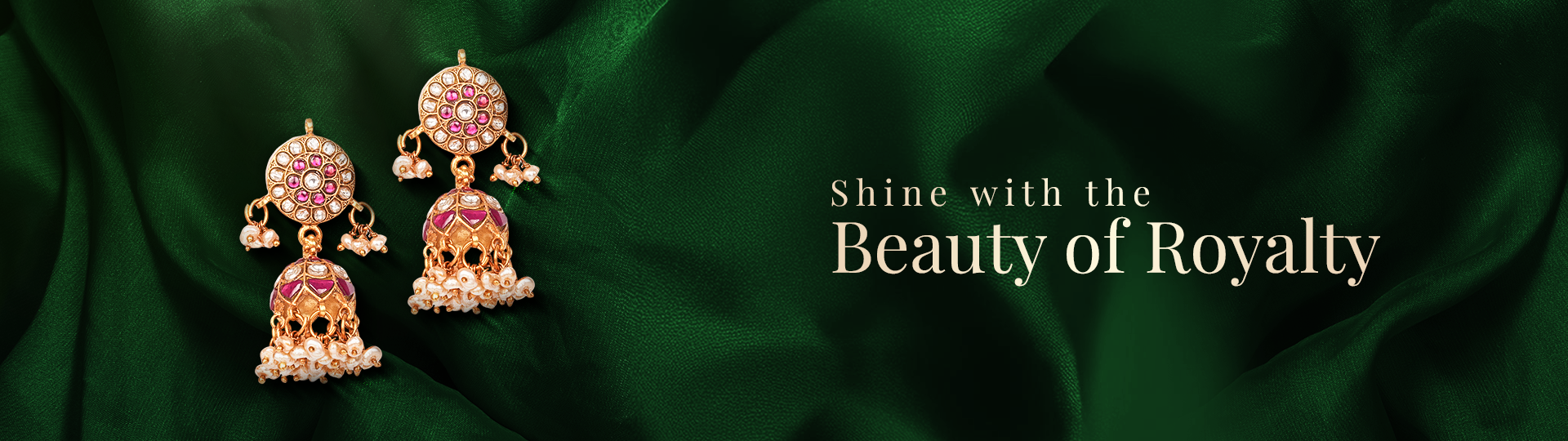 ₹ 8,055NEELAKSHI KUNDAN FLORAL DESIGN GREEN EAR JUMKIS WITH PEARLS