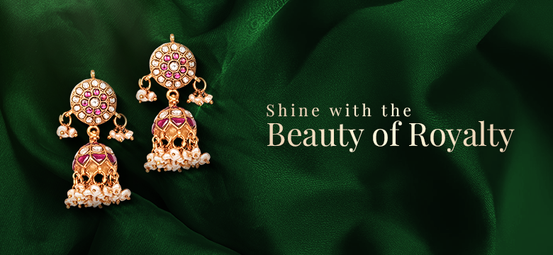 ₹ 8,405ADARSHINI KUNDAN FLORAL DESIGN EAR JUMKIS WITH EMERALDS