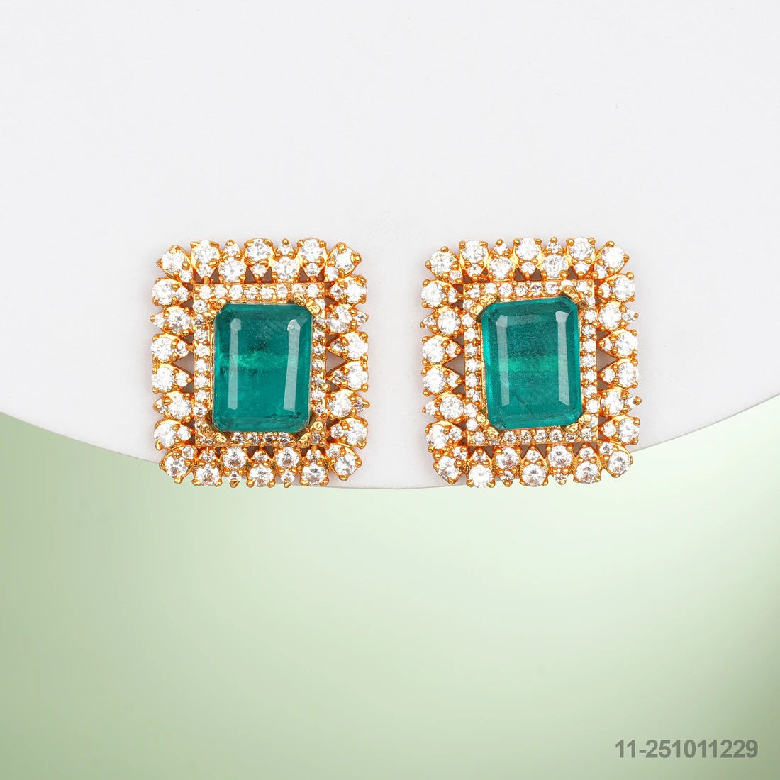 Add a regal charm to your look with these emerald green rectangle stud earrings. Featuring a bold emerald-cut stone framed by two layers of sparkling diamond accents, these earrings strike the perfect balance between sophistication and luxury. Ideal for weddings, parties, and festive occasions, they are timeless statement pieces youÕll treasure.