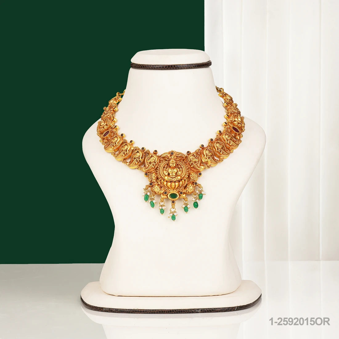 ARAVINDA NAKSHI LAKSHMI DESIGN NECKLACE WITH EMERALDS AND PEARLS