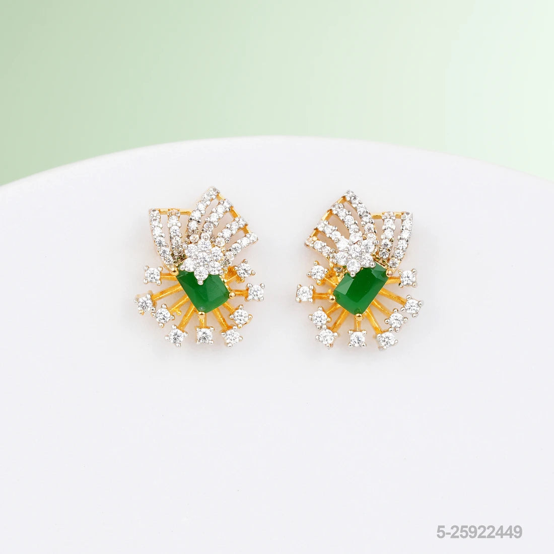 Add a touch of bold brilliance to your look with these radiant emerald green stone stud earrings. Designed with a striking central stone framed by cascading CZ accents, they create a sunburst effect that instantly brightens your style. Perfect for cocktail evenings, weddings, or a chic everyday glam, these earrings blend timeless elegance with modern artistry.