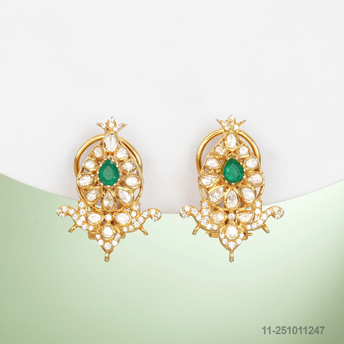 IISHITA MOISSANITE DROP DESIGN EAR STUDS WITH EMERALDS