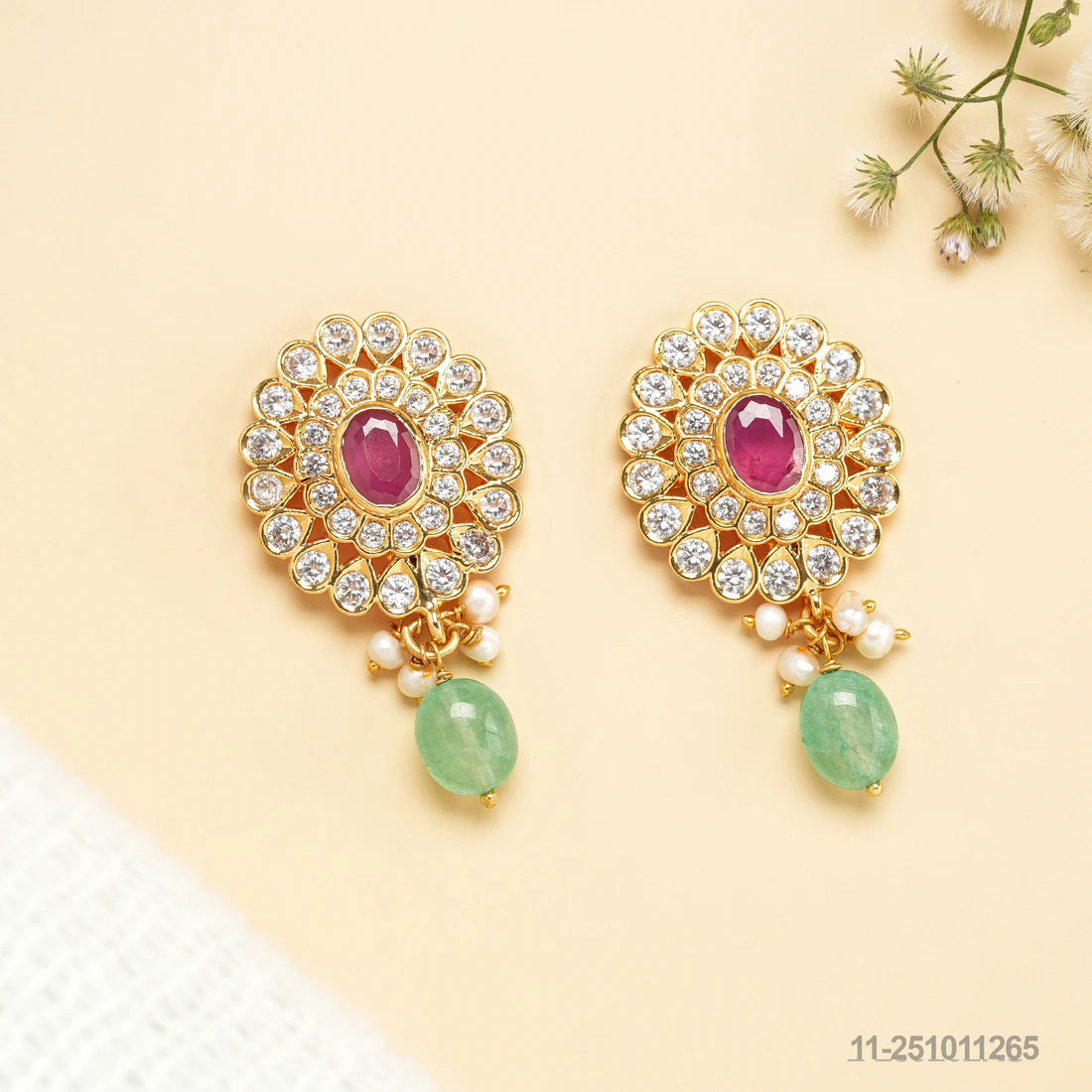 KEERTHANA CZ EAR STUDS WITH RUBIES AND EMERALD BEADS