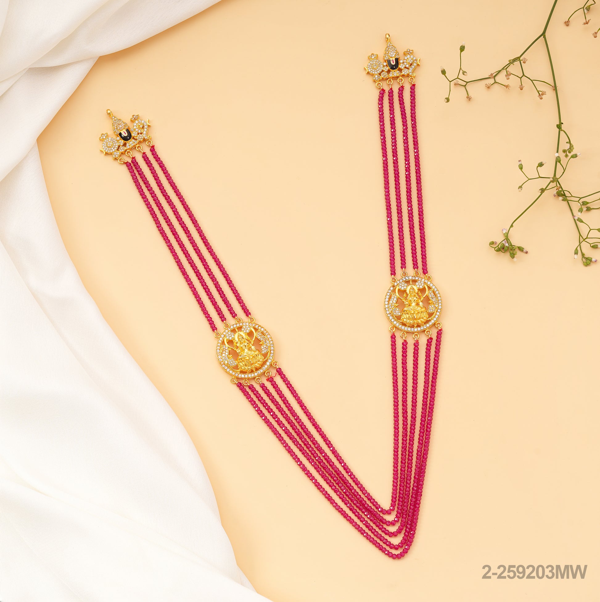 MENAKA CZ LAKSHMI DESIGN PENDANTS WITH RUBY BEADS MALA