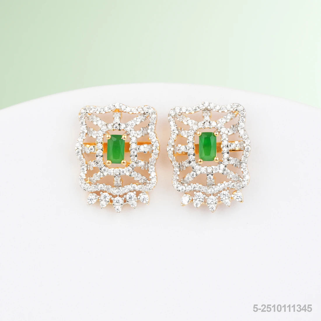 Add a bold touch of sophistication with these emerald radiance CZ stud earrings. Designed in a geometric openwork pattern, each earring features a striking green rectangular stone at the center, beautifully surrounded by a dazzling frame of CZ accents. Elegant yet contemporary, these studs are perfect for festive gatherings, formal occasions, or adding a statement to your everyday ensemble.