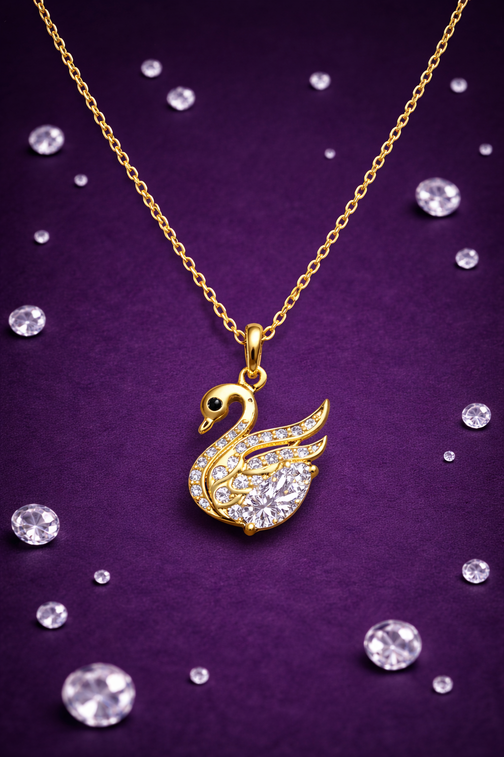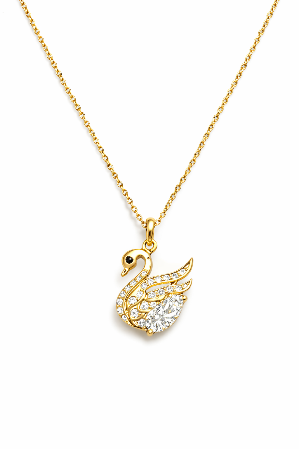 Make a statement with this stunning GOLD plated swan design pendant and chain. This beautiful necklace is made of 92.5 SILVER and featured with CZ stones…