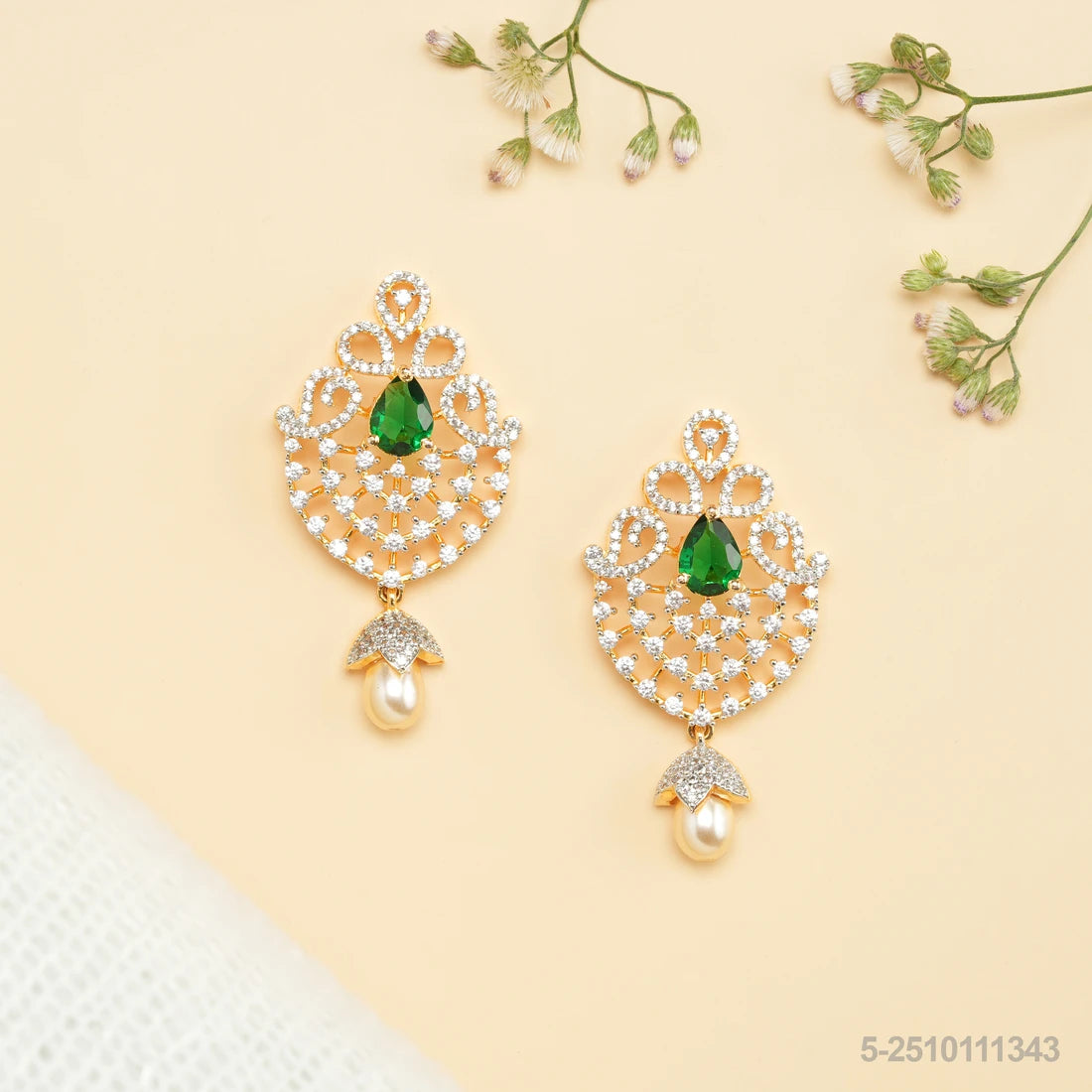SITARA CZ DROP DESIGN EAR STUDS WITH EMERALDS AND PEARLS