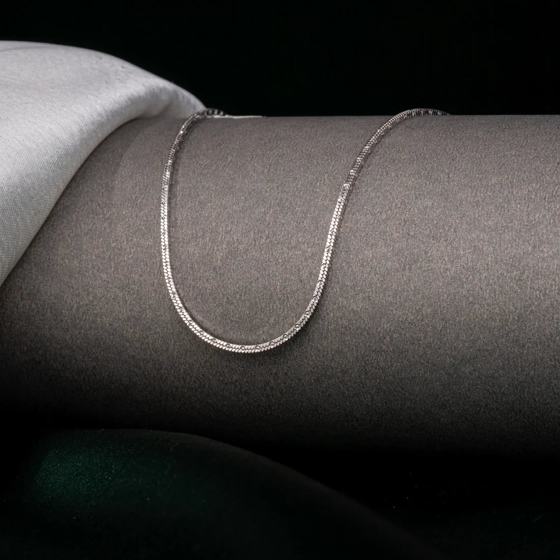 STYLISH TEXTURED BAR LINK SILVER CHAIN FOR WOMEN