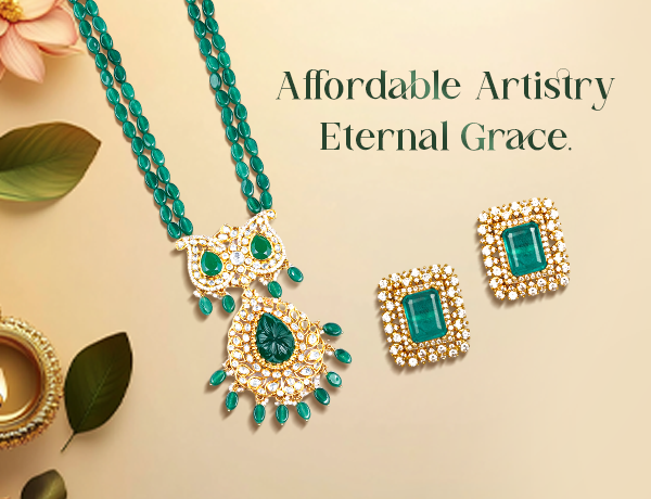 PRAJWALA NAKSHI DESIGN NECKLACE WITH EMERALD BEADS AND PEARLS