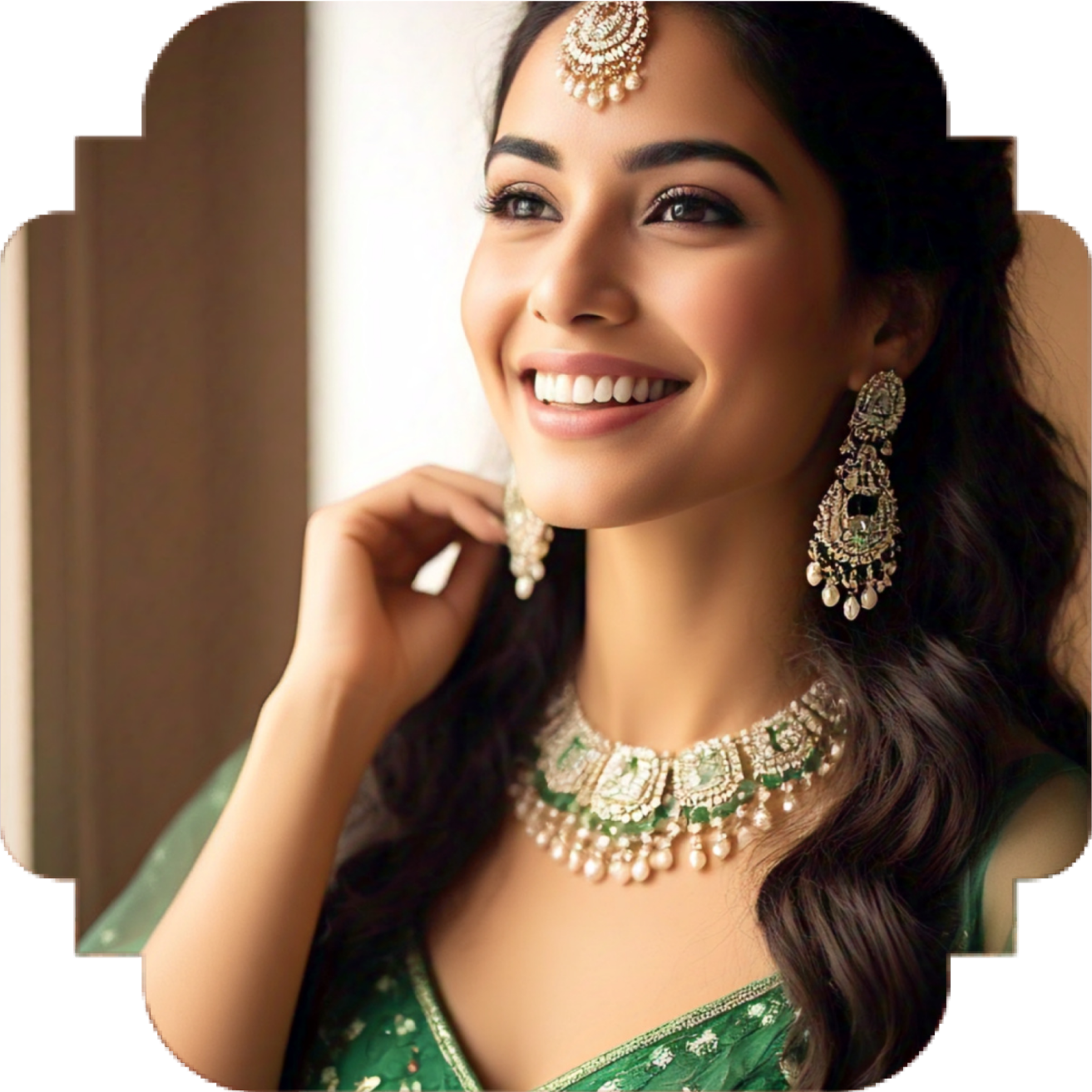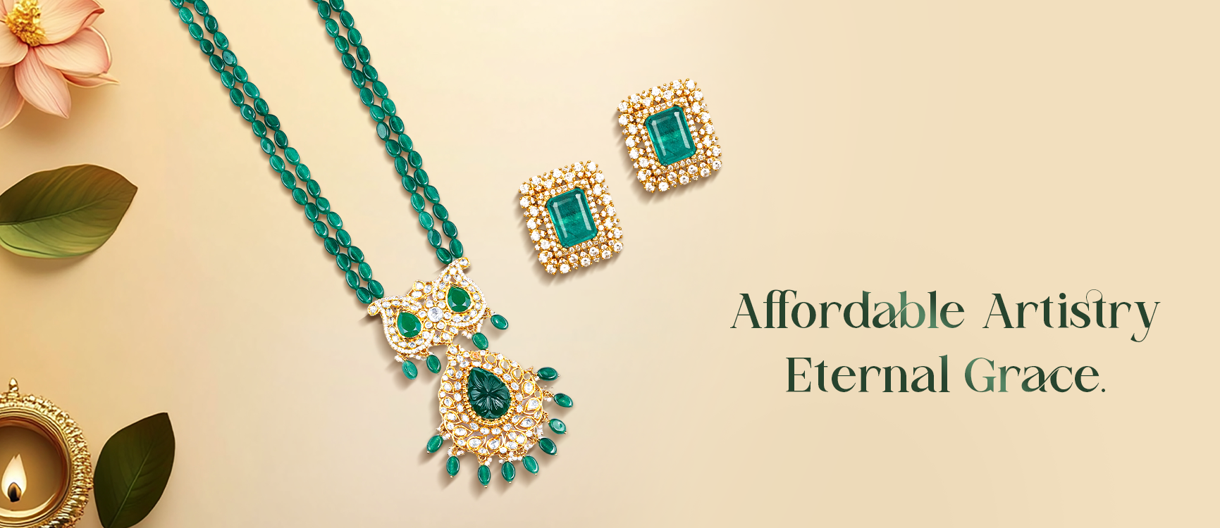 ISHYA MOISSANITE PENDANT WITH EMERALD PEARLS AND BEADS MALA OR CHAIN
