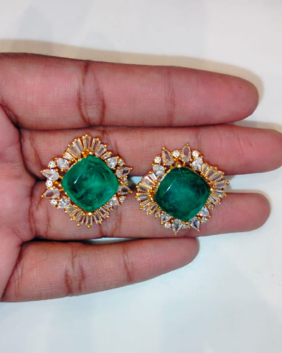 SITARA CZ DROP DESIGN EAR STUDS WITH EMERALDS AND PEARLS