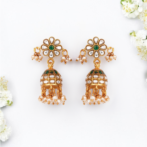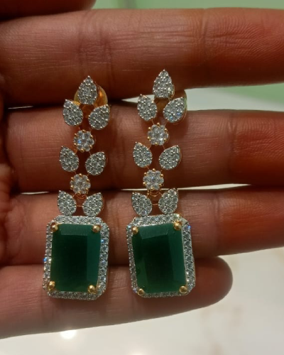 SHARMILA CZ FLORAL DESIGN EAR HANGINGS WITH EMERALDS AND BEADS