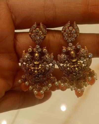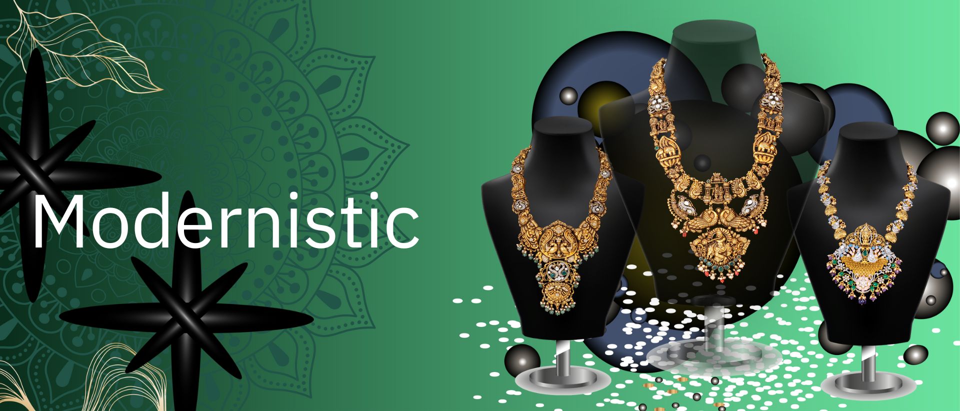 SAMPRADAYA NAKSHI LAKSHMI DESIGN NECKLACE WITH MOISSANITES EMERALD RUBY BEADS AND PEARLS
