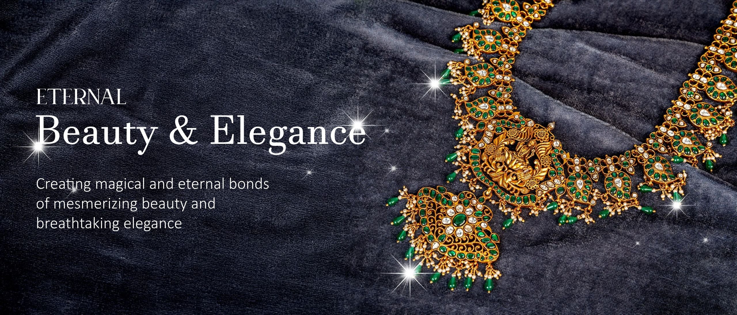KANAKAM NAKSHI LAKSHMI DESIGN NECKLACE WITH EMERALD BEADS AND PEARLS