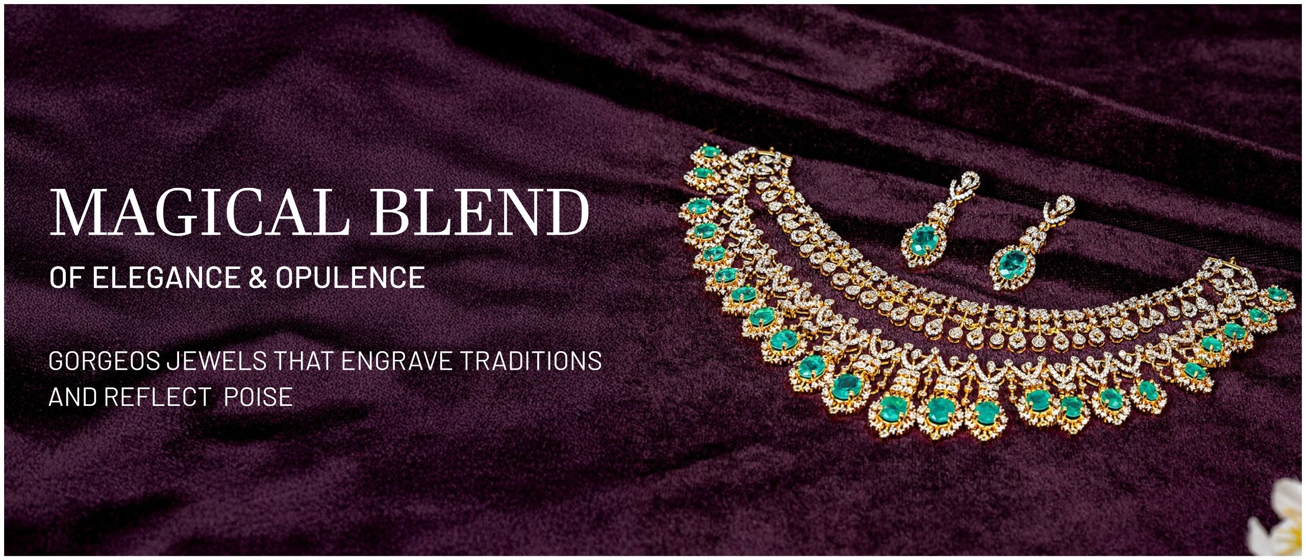 AMUKTHA CZ LEAF DESIGN NECKLACE WITH EMERALDS